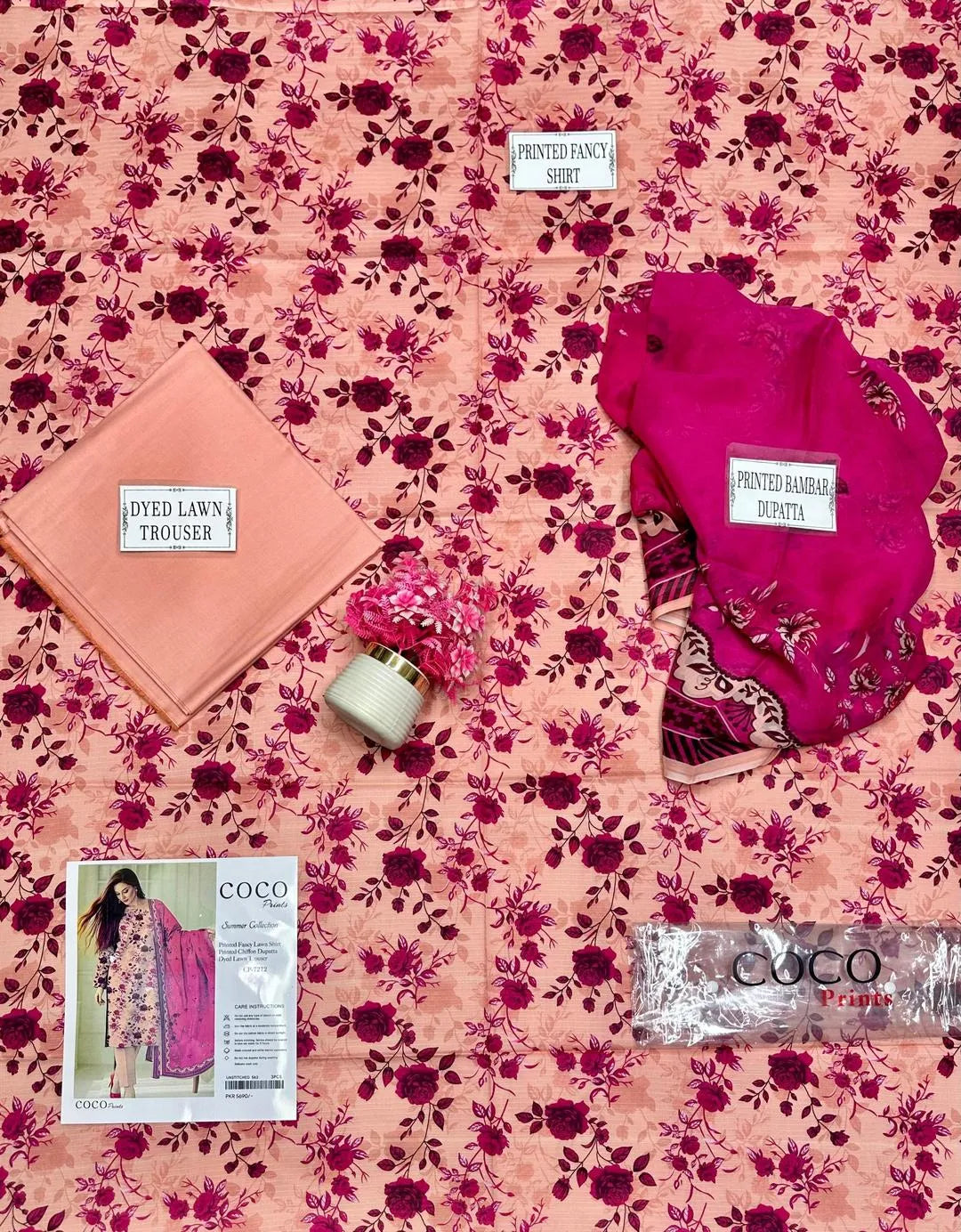 Looking for a stylish yet comfortable outfit for your next event or daily wear? This 3-piece unstitched printed suit is designed for Pakistani women who want to look elegant without compromising on comfort. The soft pink base with bold magenta floral prints on the shirt and dupatta creates a stunning contrast, perfect for weddings, parties, or even office wear. The lightweight fabrics ensure you stay cool during Pakistan’s warm weather, while the elegant design makes you stand out. This premium quality suit is crafted with durable materials for long-lasting wear. The shirt is made from breathable Dobby Lawn fabric, offering a comfortable fit and a subtle textured look. The trousers are made from smooth Lawn fabric, providing a sleek silhouette and easy movement. The dupatta is made from luxurious Bamber fabric, adding a touch of sophistication with its printed floral border. All pieces are designed for easy stitching at home, making it a perfect DIY project for Pakistani tailors and home sewers. The vibrant pink color is ideal for spring and summer, and the stylish design will elevate any casual or festive look. - Premium Quality materials for long-lasting wear - Best price in Pakistan for this stylish 3-piece set - Durable fabrics including Dobby Lawn, Lawn, and Bamber - Stylish floral prints on shirt, dupatta, and border design - New Arrival perfect for daily wear or special occasions - Ideal for Pakistani women seeking comfort and elegance • Shirt Fabric: Dobby Lawn • Pattern: Printed • Shirt Front Pattern: Printed • Sleeves Pattern: Printed • Shirt Back Pattern: Printed • Trouser Fabric: Lawn • Trouser Pattern: Plain • Dupatta Fabric: Bamber • Dupatta Pattern: Printed • Number Of Pieces: 3 Pcs • Package Includes: 1 x Shirt, 1 x Dupatta, 1 x Trouser • Shirt Cutting: 3.0 Meter • Trouser Cutting: 2.5 Meter • Dupatta Cutting: 2.5 Meter • Color: Pink • Note: There might be an error of 1-3 cm due to manual measurement, and slight color differences may occur as a result of varying lighting and monitor effects.